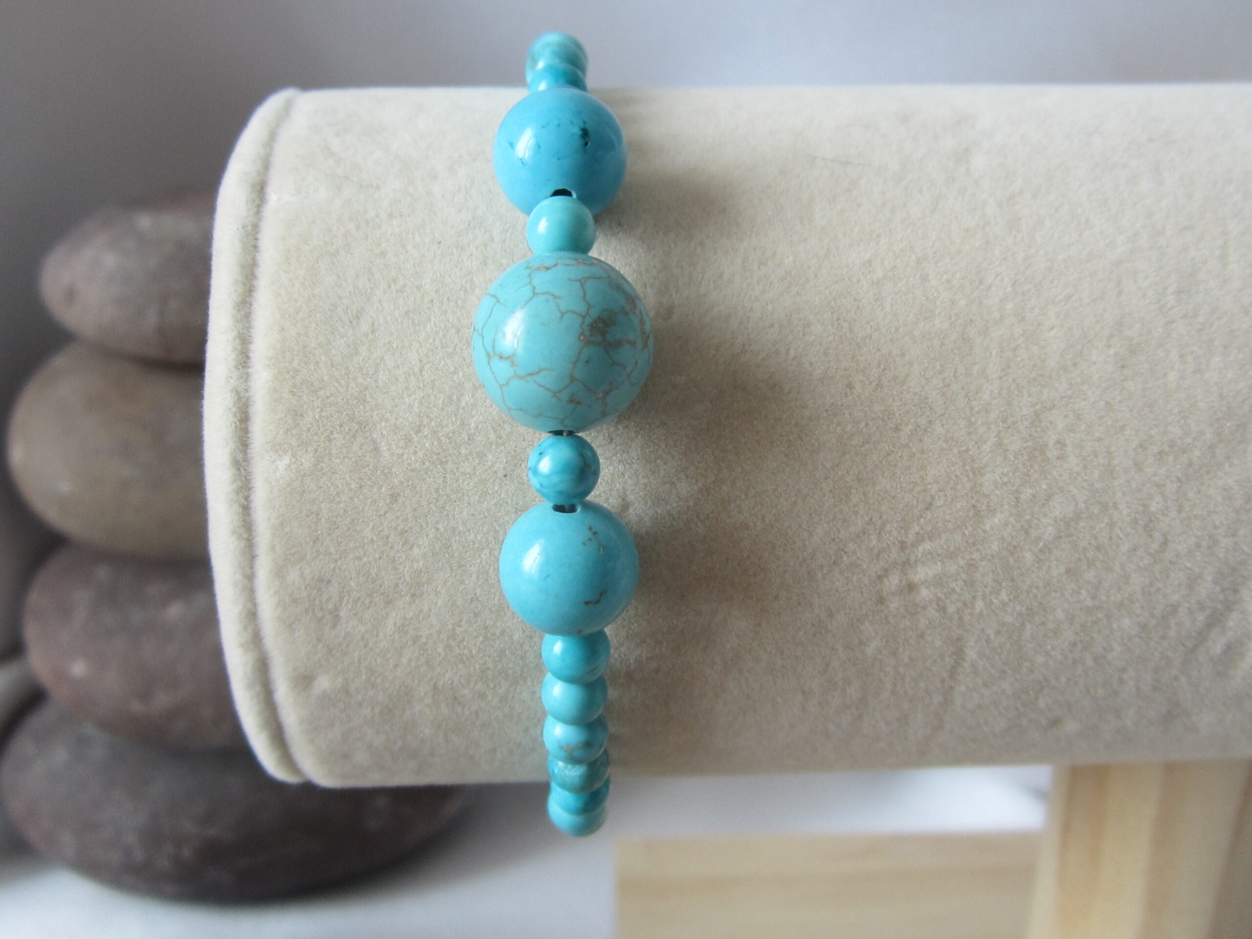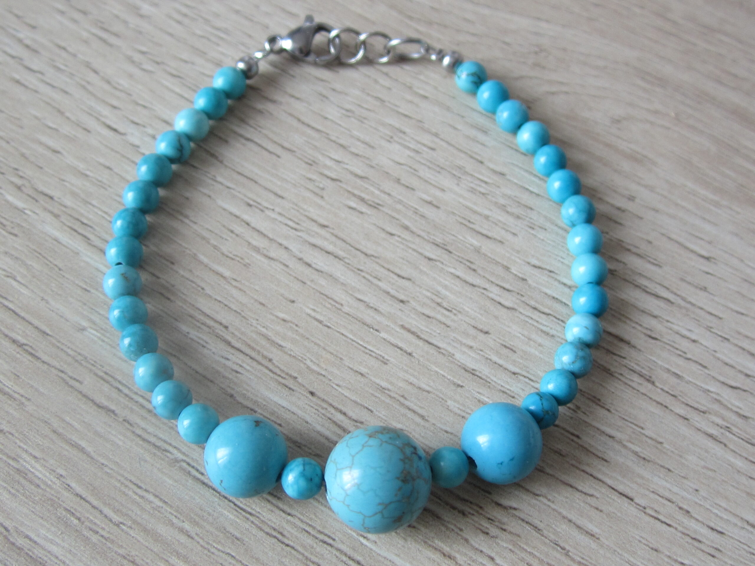 Bracelet de Turquoise naturelle, de perles fine de 4 mm, 8 et 10 mm