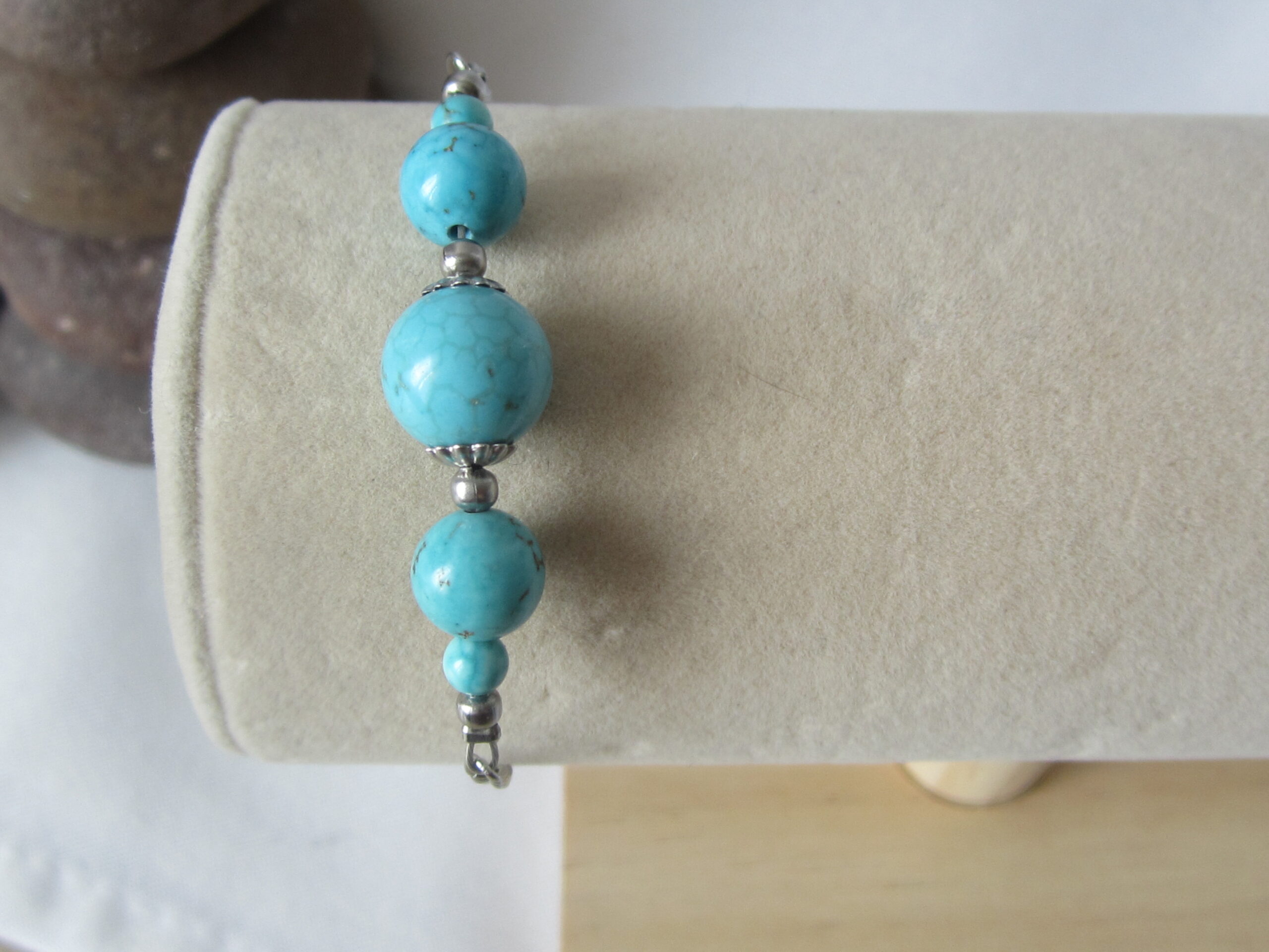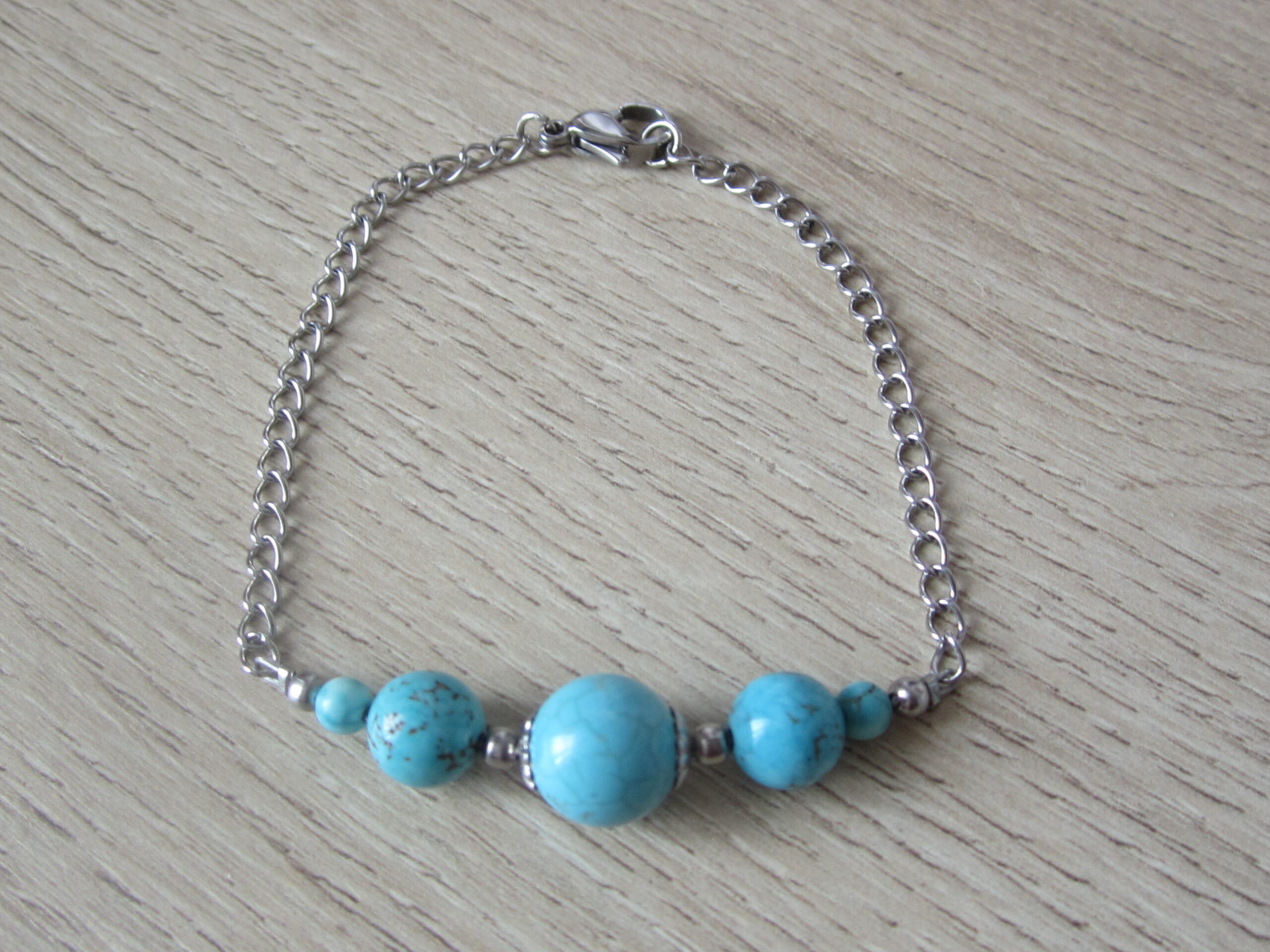 Bracelet de Turquoise naturelle, perles de 4, 8 et 10 mm petites perles d’inox.