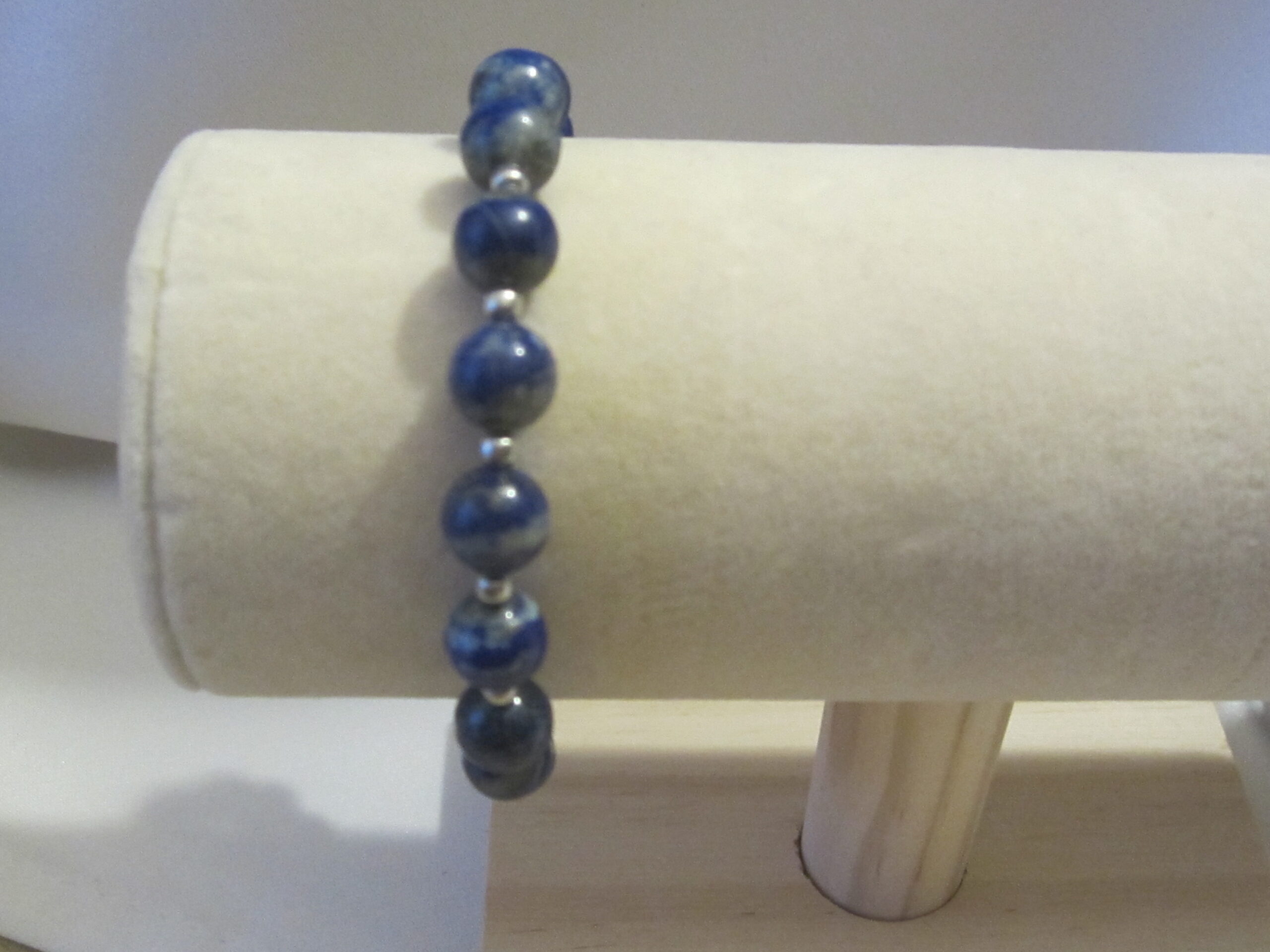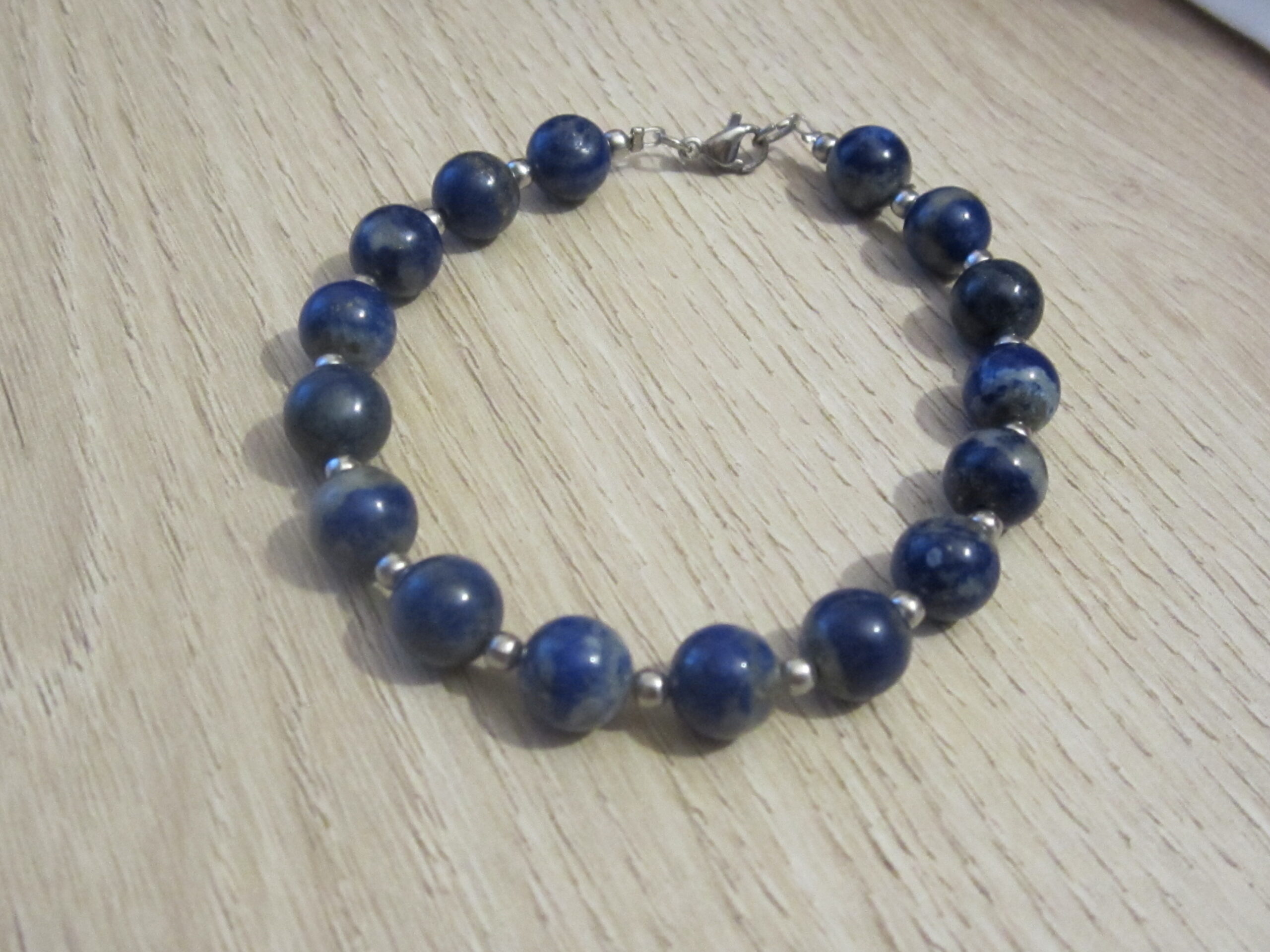 Bracelet de perles Lapis Lazuli de taille 8 mm, monté sur fil d’acier et fermoir inox